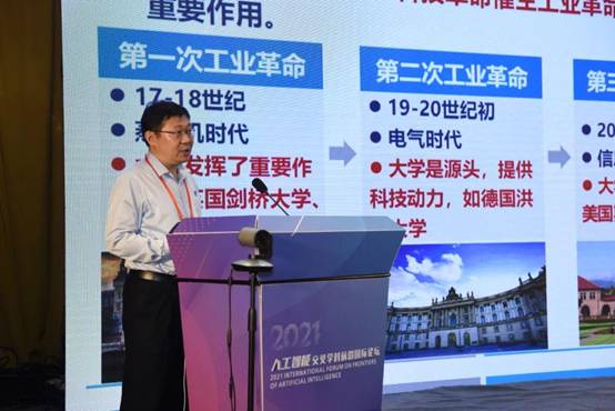 王鑫教授从人工智能交叉学科发展、天津大学人工智能交叉学科人才培养、天津大学智能与计算专业人才培养等方面为我们带来了精彩的报告。王鑫教授首先介绍到:四次工业革命(蒸汽时代、电气时代、信息技术时代和智能时代)的历史发展证明,互联网、大数据与人工智能正在全球范围内掀起新一轮产业革命,科技革命催生工业革命,大学在推动科技革命中发挥着重要作用。同时指出,人工智能交叉学科发展体现在人工智能与应用学科的交叉融合,人工智能的研究与发展体现了高度学科交叉与融合,与许多相关学科和领域的发展相辅相成,在各行各业的应用中不乏人工智能的身影。