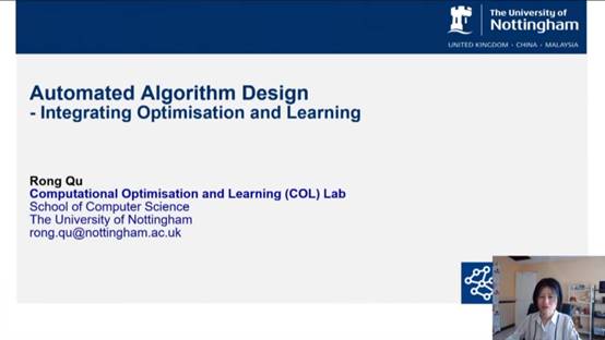 屈嵘教授的报告的主要围绕“自动算法设计”展开,希望通过有效结合优化和机器学习的不同技术来设计高效的算法以解决现实复杂的组合优化问题。屈教授首先介绍了自动算法的设计的几个解决方案,包括为医疗系统提供人力调度的优化方案、为医护人员到访病人家提供的优化方案和组播路径优化方案。解决组合优化问题需要先定义决策变量,再定义它的约束条件和优化目标,之后选择相应的算法来有效解决。在屈教授最近的研究里,把自动算法设计本身定义成了一个组合优化问题。在自动算法设计方面新的研究成果中,超启发式算法研究里有一大类是属于自动产生新的启发式算法的研究,其中通用的技术是基因编程(Genetic programming)和基因表达编程(Gene expression programming)。从当前的一些研究成果可以看到在设计算法的过程中,没有统一的标准或模型,使得研究的成果无法共享,这推动了一项新的研究:建立自动算法设计的通用组合优化问题(General Combinatorial Optimisation Problem,GCOP)模型,并在此基础上又建立AutoGCOP框架。屈教授指出自动算法设计领域里可能还面临新的挑战:如何学习算法设计中的调用操作符,以更加有效的设计和算法解决组个优化问题;机器学习应用到优化里的研究还处于起步阶段;如何解释学习到的自动算法设计的新知识,只有在可解释的情况下,这种新的知识才能被更通用、更有效的共享和反复使用。