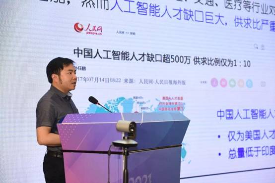 报告伊始,黎铭教授从人工智能目前发展的现状出发,指出全球范围内人工智能技术发展突飞猛进,学术界、各国政府和工业界均高度重视人工智能;同时强调各行业对人工智能技术的需求日益增加,导致目前人工智能人才供需严重失衡的现象。而现行的高薪挖人的人才抢夺方式对整个社会而言没有增量,无法从根本解决问题。进而点出解决问题的根本途径是培养人工智能方面的专业人才。