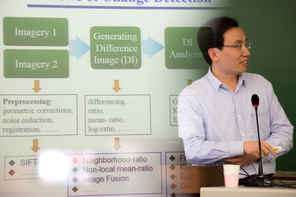 为期两天的学术活动安排了17场精彩的学术报告。报告的内容涉及“功能核磁共振成像在脑科学中的机会”、“大数据的稀疏重构,低秩近似”、“高分辨的压缩感知重构”、“脑神经媒体组学”、“基于稀疏表示和协作表示融合的高光谱图像分类”、“基于集成学习的遥感数据解译”、“融合物理-信息-认知空间的模式识别新方法”、“高光谱遥感影像的波段选择与异常检测研究”、“大椭圆轨道卫星的导航定轨技术研究”、“数字全息投影成像技术应用研究”、“高分辨率合成孔径雷达(SAR)图像半参数统计分析”、“自步学习的一些进展”、“遥感影像稀疏感知与处理”、“基于深度神经网络的遥感影像变化检测”、“高光谱遥感影像特征学习与半监督分类”以及“2016 IGASS数据融合比赛内容展示”。此次活动通过横幅、移动展板、网上公告等多种形式的展示,使得广大师生及时了解学术周期间的各项活动动态,受到了校内外师生的广大专注和认可。