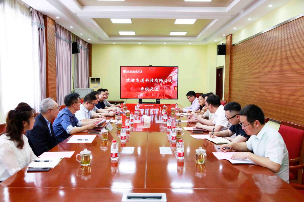 参观后,学院与友道科技有限公司开展校企合作交流座谈。会议由李大泳副院长主持。双方对校企合作互利共赢有高度共识,对未来合作领域和相关问题进行了深入地探讨交流。