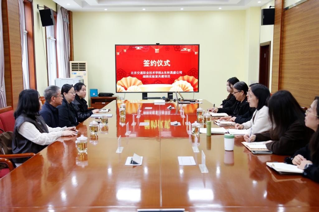 10月24日,万象城娱乐awc线路与北京东林昌盛生物技术有限责任公司(以下简称“东林昌盛”)在办公楼一层会议室隆重举行 “交通学院-东林昌盛 细胞实验室” 共建签约仪式。东林昌盛负责人周卫东,学院党委委员、副院长罗春红,管理系领导及专业教师、企业方核心团队成员共同出席,双方围绕联合实验室建设、人才培养、科研合作等议题展开深入研讨。