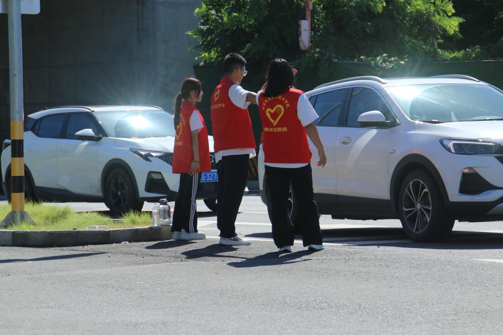 校门口,志愿者的身影早已就位