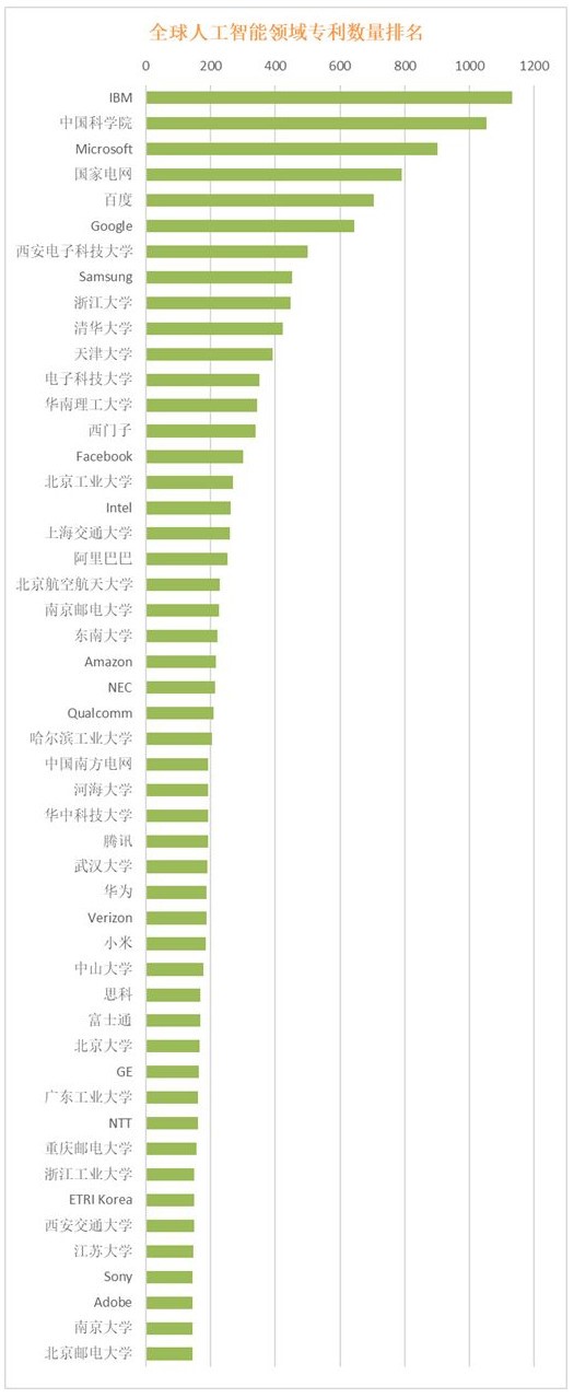 人工智能产业正在全球范围内飞速发展,据统计,2008年后,全球在人工智能领域的有效专利家族约6万个,专利数量约10万件,而中国在人工智能领域申请的专利数量已经超越美国,引领了人工智能相关专利的申请。在全球有效专利数量排名中,IBM、中国科学院、微软位列前三,我国vwin德赢ac米兰官方网、浙江大学、清华大学三所高校进入了前十,其中vwin德赢ac米兰官方网列第七位。