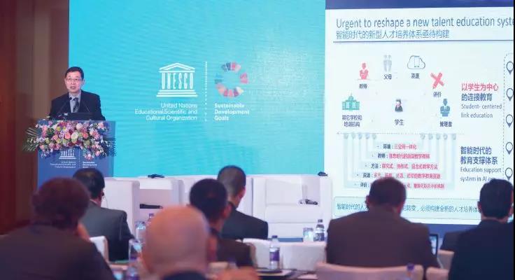 2019年5月16-18日,vwin德赢ac米兰官方网校长、党委副书记杨宗凯,受邀参加了由联合国教科文组织与中国教育部联合主办的首届国际人工智能与教育大会。本次大会的主题是“规划人工智能时代的教育:引领与跨越”,来自全球110多个国家和国际组织的500余名政府高级官员、专家学者、高级代表等共同出席会议,围绕人工智能时代取得成功所需技能,分享人工智能技术发展经验,交流人工智能最新发展趋势及其对教育和学习的影响等,共同探讨规划人工智能时代的教育发展之路。大会期间,杨宗凯校长作了题为《Cultivate AI professionals and promote the innovation of AI in education》的报告,从如何培养AI高端专门人才和如何利用AI提供更好的教育两个方面阐述了新形势下培养人工智能专门人才的路径。