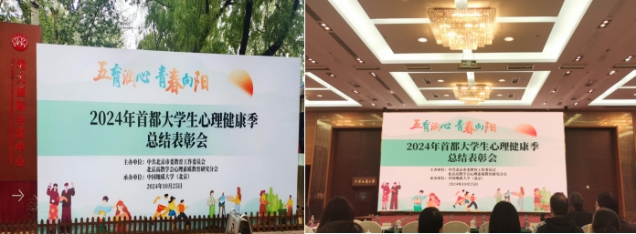 10月25日,2024年首都高校大学生心理健康季闭幕式在北京地质大学(北京)隆重举行,北京高教学会秘书长线联平、北京市委教工委宣教处处长于海、北京地质大学(北京)党委副书记林善园,以及各高校学生工作部门领导、心理中心负责人及获奖师生代表近百人参加闭幕式。大会展示了2024年首都大学生心理健康季活动成果并表彰了获奖的单位和个人,我院心理健康教育中心主任张梦元、获奖学生代表管理系于美婕参加闭幕式。