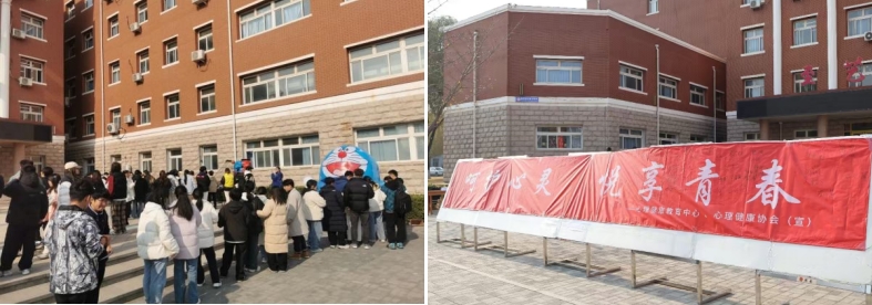 11月7日中午,由学生处心理健康教育中心主办、心理健康协会承办的第17届“12·5”心理健康教育月开幕式暨心理游园会活动在教一楼门前举行。本次活动以“呵护心灵,悦享青春”为主题,旨在通过系列活动帮助同学们放松心情、释放压力,促进心理健康,培养积极心态,丰富青春体验。我院245名同学参加了本次活动。