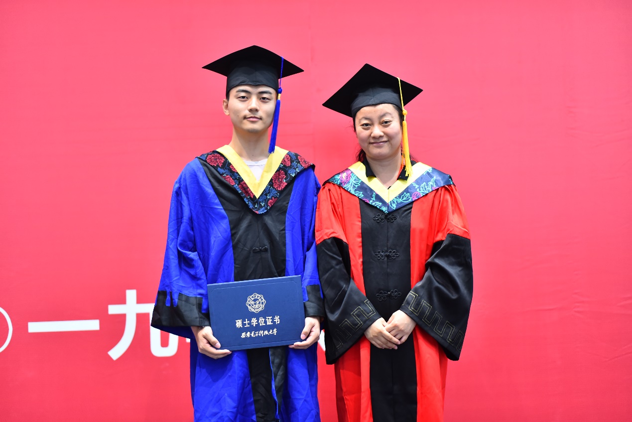 优秀毕业生代表刘旭博士在发言中首先感谢学院的老师们以严谨的治学态度、前沿创新的学术思想、开拓进取的科研精神,犹如灯塔般引领同学们在求学路上中翻山越岭、扬帆远行;感谢老师们指引学生修身治学、砥砺思想、情怀家国,为学生的学习生活保驾护航、遮风挡雨。刘旭满怀感恩地说道,每一位毕业生同学都将与他一样,带着母校的关爱,带着西电艰苦奋斗、自强不息的精神,带着梦想,再次出发。无论身在何处,无论居于何职,西电人的根和魂会永远留在母校。他倡导毕业生们以国家发展、社会进步、人民幸福和人类福祉为先,心怀使命、肩负责任,做有价值、有影响力、有意义的事业和工作,不忘初心,砥砺奋进,在实现中国梦的伟大实践中,书写别样精彩。