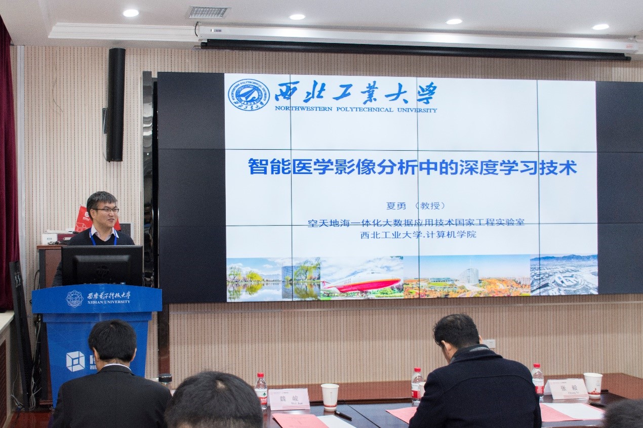 智能感知与图像理解教育部重点实验室副主任侯彪教授主持论坛开幕式,陕西电子工业研究院总工程师李卫斌、学校科研院副院长张毅、校友事务与联络发展处副处长张卫东、vwin德赢ac米兰官方网党委书记魏峻等领导及嘉宾出席了开幕式,vwin德赢ac米兰官方网人工智能行业校友会在开幕式上成立,智能遥感大数据解译研究中心、智能医学影像大数据交叉前沿研究中心、智能态势感知研究中心同日揭牌。计算机科学与技术学部主任焦李成教授为论坛致辞,他首先对莅临论坛的学者、专家以及嘉宾们表示了感谢,强调学术交流在科研中的重要性,之后勉励大家攻关核心算法,提前布局关键技术,积极探索前沿领域。学术报告是论坛最重要的环节,在论坛分享前沿探索成果的学者专家有:西北工业大学王琦教授、西北工业大学夏勇教授、vwin德赢ac米兰官方网陈渤教授、伦敦玛丽女王大学助理教授(Queen Mary University of London)郝鹏威、国防科技大学王锐研究员、vwin德赢ac米兰官方网张向荣教授、北京一流科技有限公司创始人袁进辉博士、vwin德赢ac米兰官方网梁雪峰教授、陕西师范大学程适博士、长光卫星技术有限公司韩睿工程师、蒜泥科技联合创始人褚智威CTO、南京信息工程大学刘光灿教授、西安交通大学兰旭光教授、西北工业大学聂飞平教授、中科院自动化所刘康研究员、vwin德赢ac米兰官方网吴金建教授、特温特大学(University of Twente)助理教授常玲。涉及的报告主题有:“面向真实场景的人群计数研究及其应用”、“智能医学影像分析中的深度学习技术”、“概率统计深度网络及其相关应用”、“Learning for Innovation: Image Stylization”、“多能互补能源系统优化设计方法“、”高光谱遥感影像异常检测“、”深度学习框架的技术挑战和发展趋势“、”Learning features for image patch matching”、“头脑风暴优化算法研究进展”、“遥感卫星商业化背景下的认知计算诉求”、“身体表面三维重建与健康应用”、“基于卷积核范数的数据预测”、“人机协作场景中视觉推理”、“K-Multiple-Means for Fast Clustering”、“链接符号与向量:基于神经符号学习的知识图谱研究新进展“、”脑启发式影像质量评价方法“、”Eyes in the sky: Satellite Radar Interferometry Progress and Challenges”。