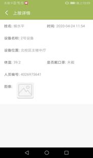 同时能够进行测温、时间、地点和人数统计,及时为相关管理部门推送精准异常信息。可实现有症状人员门禁动态控制,体温状态温馨提醒:低温、正常和高温预警,高温相关责任人报警。部分后台信息如下: