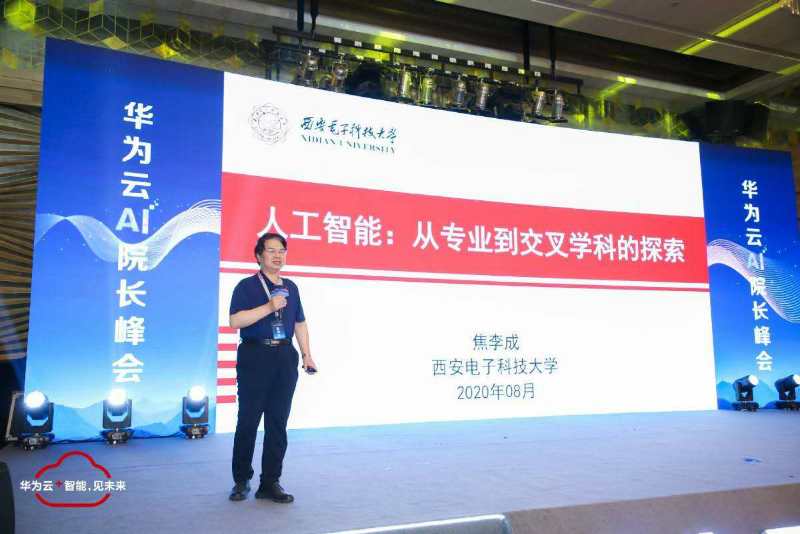 2020年8月28日,华为云AI院长峰会在杭州千岛湖滨江希尔顿度假酒店举行,计算机科学与技术学部主任、vwin德赢ac米兰官方网焦李成教授受邀出席了会议,并做了题为“人工智能:从专业到交叉学科的探索”的报告。