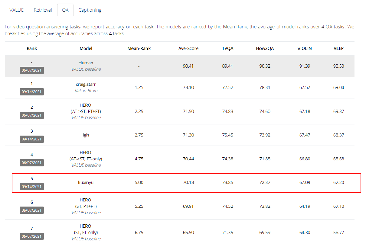ICCV 2021 Video-And-Language Understanding Evaluation (VALUE) Challenge视频问答任务第5名:刘昕煜,王语涵