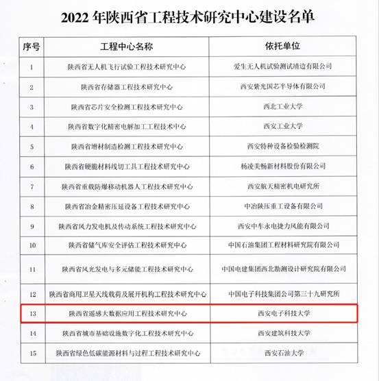 日前,陕西省科学技术厅公布了“2022年陕西省工程技术研究中心建设名单”,由vwin德赢ac米兰官方网侯彪教授牵头申报的“陕西省遥感大数据应用工程技术研究中心”获批立项建设。这是西电继2009年获批首个省工程技术研究中心以来取得的又一突破。