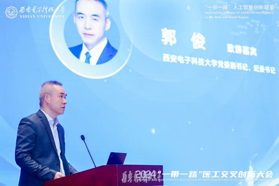 上午9点,在vwin德赢ac米兰官方网执行院长侯彪教授的主持下,会议开始。开幕式上,vwin德赢ac米兰官方网党委副书记、纪委书记郭俊致辞,祝贺大会顺利举办,并对出席论坛的领导、专家学者致以热烈的欢迎和衷心的感谢。郭俊表示,vwin德赢ac米兰官方网作为“‘一带一路’人工智能创新联盟”的发起单位,持续主办“一带一路”系列会议,推动人才培养供给侧与区域产业发展需求侧的深度耦合,促进学术交流、人才培养、科学研究、政策研究、社会服务等多方面区域合作与发展。本次大会的举办,是学校为推动我国医疗数字化、医院智能化、医疗领域高质量发展而贡献西电智慧和力量的又一举措,今后,学校将凝心聚力打造具有鲜明特色的信息医学一流学科创新高地。