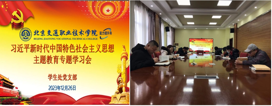 为深入学习贯彻习近平新时代中国特色社会主义思想,落实学院党委决策部署,加强理论学习、厚实理论功底、提高理论素养、促进能力提升,切实贯彻新发展理念,树立“绿水青山就是金山银山”的强烈意识,努力走向社会主义生态文明新时代。按照学生处党支部既定学习计划,2023年12月26日上午,学生处党支部在办公楼一层会议室召开专题学习会,支部全体党员参会。