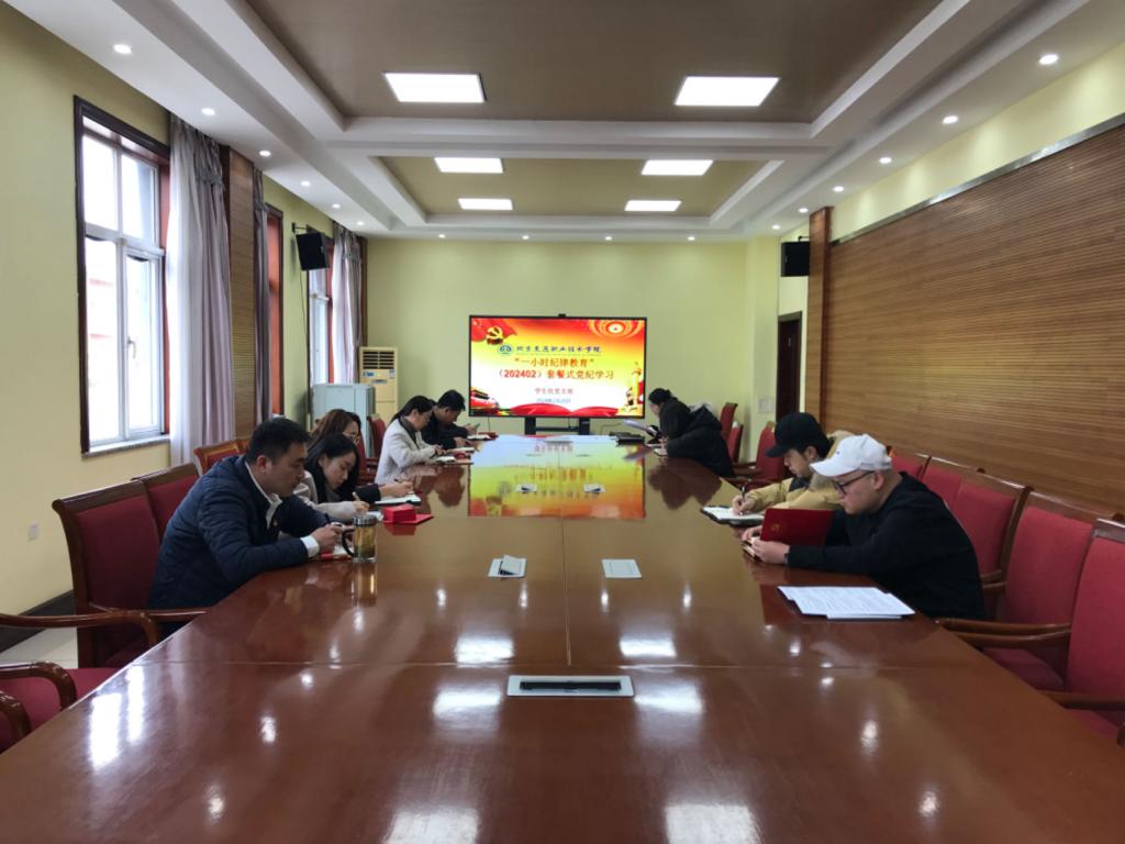 为深入学习贯彻习近平新时代中国特色社会主义思想,充分发挥党史以史鉴今、资政育人的作用,用党的历史教育人、启迪人、感化人、鼓舞人,不断提高政治判断力、政治领悟力、政治执行力,增强斗争本领,把握历史主动。同时教育引导党员干部加强作风建设,严明纪律规矩,坚持廉洁底线,2024年2月28日上午,学生处党支部在办公楼一层会议室召开专题学习会和“一小时纪律教育”党纪学习会。