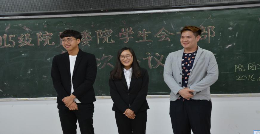 会议开始,由团委学生活动指导颜金海老师对团委2015-2016年第二学期内各项工作进行了总结,并表达对上学期工作的肯定。同时他也指出一些问题和不足,他强调学生会干部和干事之间要增强沟通和交流,干部和干事应保持良好的学习生活关系,保持良好的工作热情,个人也要注重班级团支部发展以及注重班级关系,为团支部和团总支多做贡献,要加强内部纪律整顿,强化在学院学生干部各部门责任意识,低调行事,礼貌待人,调整思想,也要积极参加到学院下达的各项活动中。随后,由新任院团委社会实践部、组织部、宣传部、办公室、院团委青年志愿者协会、院团委社团联合会、院学生会广播站、技术部、生活部、体育部、外联部、文艺部、学习部、信息部,主席团2015级学生干部依次上台自我进行介绍及对以后工作的期许。新任主席对于以上各部负责人讲话进行总结,并阐述了2016-2017学年第一学期的院学生干部工作重心和指导思想。