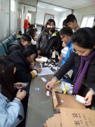 到了德胜门公交总站以后,大家领取了材料之后很快的进入了工作状态。按照之前的分组,一部分人写学生信息以及修剪相片,一部分人粘贴防伪标签。