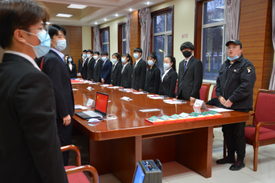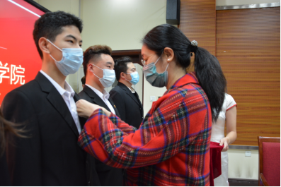 本次仪式由院团委组织部副部长邬金阳主持,副部长刘延年负责仪式场务配置。院学生会主席团、2020级全体团支书参与此次仪式。仪式第一项,全体人员起立奏唱国歌,随后进入仪式第二项主持人介绍入团人员名单,会议邀请院团委李萍老师为新团员颁发团员证及佩戴团徽,并与新团员合影留念。会议第三项,院团委社会实践部副部长郑煜鹏带领新老团员宣读入团誓词,增强了团员责任感。随后,分别由入团介绍人刘夏雨菲宣读《团章》中有关团员义务和权利的条款,团学干部代表巍山峰,团支书代表马嘉硕对新团员提出了新的希望与要求。仪式最后,团委李萍老师总结讲话,希望新老团员同学们在今后的学习工作中继续努力,不断锤炼自己的过硬本领,严格要求日常作风,树立远大理想目标,做有抱负的青年一代,为祖国贡献自己的青春力量。