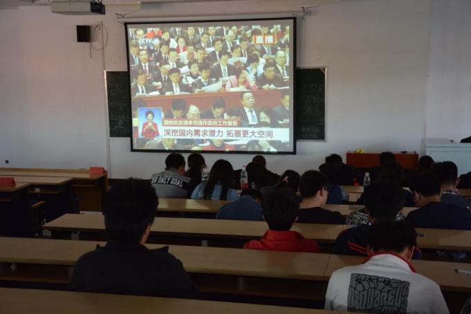 院团委组织部组织各系团总支干部,各支部书记观看学习相关视频,共152名团员代表参加了此次团课学习。团员们认真学习李克强总理对两会问题的总结和概述,践行新发展的理念,坚定社会主义道路建设,扎实开展好学习全国“两会”精神活动。认真学习“两会”精神,准确把握“两会”精神实质,准确理解四个“全面”战略布局,凝聚力量,引导广大学生干部树立正确的世界观、人生观、价值观,以自身带动全院学生,明确含义,学习全国“两会”精神。