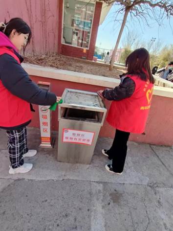 志愿者们有的用手套、有的用夹子、有的直接用双手,将烟头捡拾进垃圾袋;有的在各自的负责的吸烟区开展清洁工作,此次活动在每周一、周四的中午开展,志愿者的身影穿梭在校园中,将烟头和垃圾一点一点收入垃圾袋中。经过他们的地毯式搜索,所到之处被拾捡得干干净净,吸烟区的各项设施整洁如新。活动中,志愿者也向路过的同学们宣传遵守公共文明、自觉爱护环境卫生的重要性,告知大家在乱扔烟头对环境产生的危害,宣传环保意识,引导师生养成文明的生活方式和健康的行为习惯,提升大家的控烟及防火意识,共同肩负起爱护校园环境的重任。