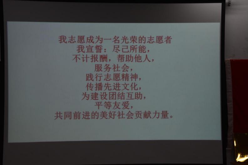 “我志愿成为一名光荣的志愿者。我宣誓:尽己所能,不计报酬,帮助他人,服务社会,践行志愿精神,传播先进文化,为建设团结互助,平等友爱,共同前进的美好社会贡献力量。”全体志愿者现场宣誓并认真的填写志愿表