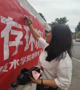 首先,在院学生会外联部的同学布置下,我们的签横幅活动开始了。活动刚开始的时候,有许多同学都过来主动在横幅上面签上自己的名字,尤其在下课之后参加活动的同学的数量更是达到了意想不到的数量。同学们非常积极。我们也诚恳的邀请每一位在场的老师及校领导在横幅上面签字。