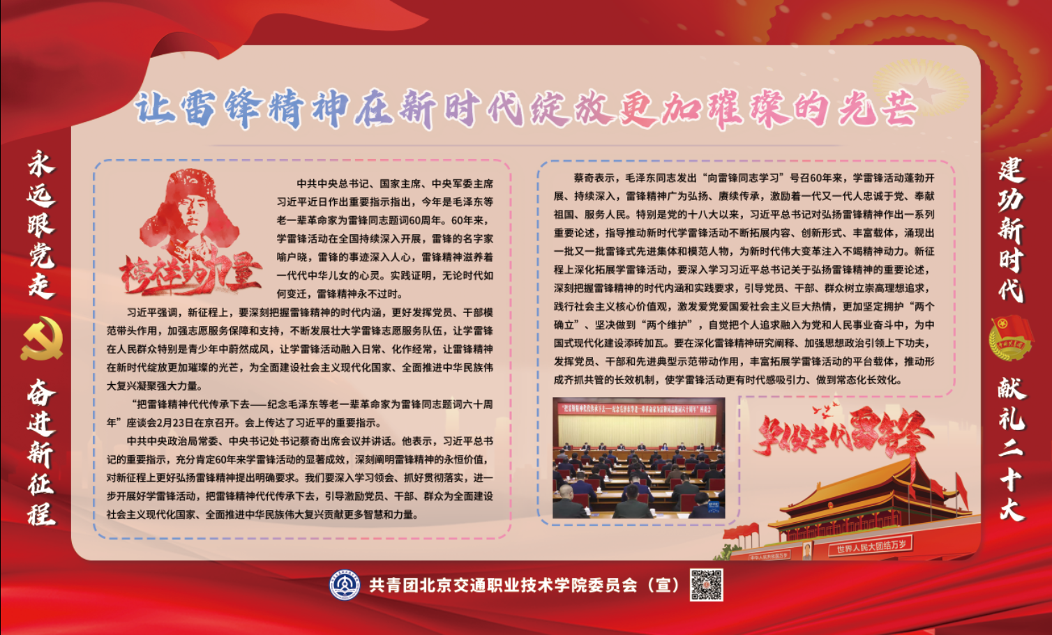 为全面贯彻落实党的二十大精神和习近平总书记在“把雷锋精神代代传承下去——纪念毛泽东等老一辈革命家为雷锋同志题词六十周年”座谈会上的重要讲话精神,让学雷锋在新时代青年中蔚然成风,让学雷锋活动融入日常、化作经常,让雷锋精神绽放更加璀璨的光芒。院团委决定在各级团组织开展学习雷锋精神主题系列活动。2023年2月28日下午,团委首先组织团学干部上好“开学第一课”,举办了2021级团学组织负责人第四期集中教育活动,开展“学习雷锋精神”主题团日活动。