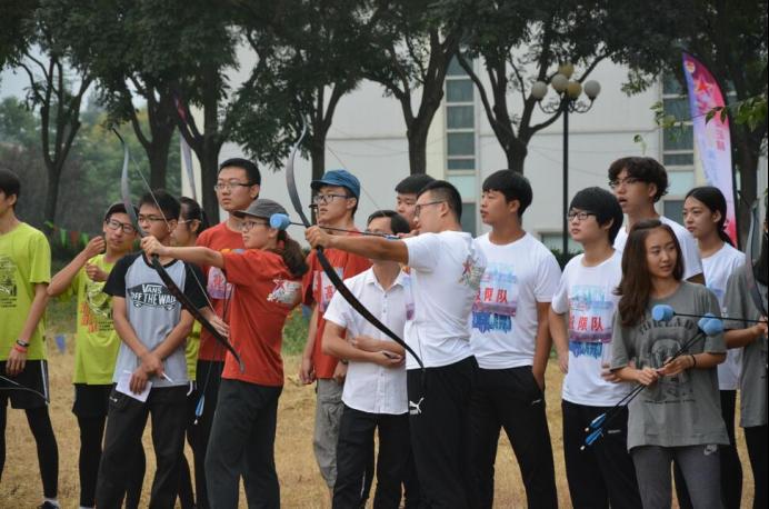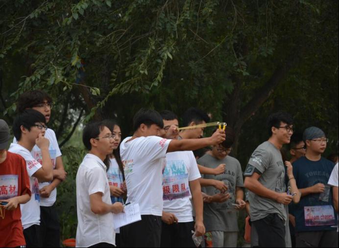 在各项环节中,我院与各高校分组竞争,通过挑战弹弓射靶、弓箭射靶、定向越野、背包整理,攻防箭等项目,展开了一场智能与体能的激烈较量。