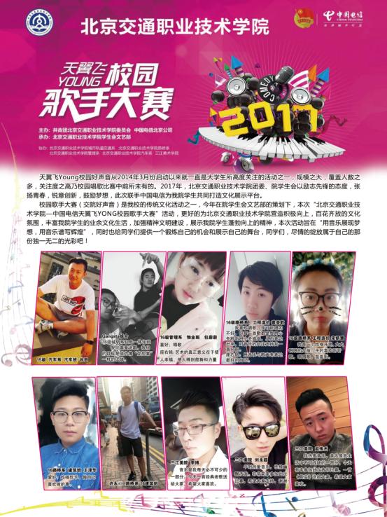 为活跃校园氛围,丰富学生课余生活,提高学生的艺术素养,为学生提供展示自我才华的舞台,万象城娱乐awc线路于2017年6月6日晚上18:00在学生宿舍5号楼前隆重举办“天翼飞YOUNG好声音”主题校园歌手大赛。中国电信北京公司方园女士、三江美院金红炜书记、学院滕辉老师和颜金海老师出席观看了本次大赛并邀担任评委。