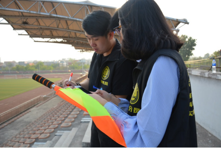 在摆字比赛现场,队员们在队长指挥下依次躺在草坪上,运用了各种姿势依次摆出字体笔画,在看台上方的答题(猜字)区的同学,目不转睛的盯着摆字区内的同学们利用身体拼接出的字体写出答案。比赛不仅考验了同学们的组织能力、理解能力和专注力,还锻炼了同学们的肢体表达能力和反应能力,体现了对彼此的信任。活动现场充满了欢声笑语,在整个比赛过程中,我院学生会生活部工作人员认真负责记录比赛成绩,并维持现场秩序,我院各参赛队也积极遵守比赛规则,秉持友谊第一,比赛第二的宗旨进行竞争。
