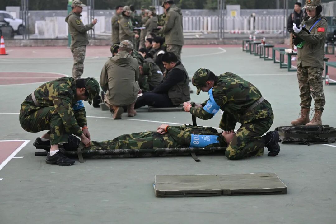 为备战此次大赛,学院团委高度重视,国防训练营提前启动选拔与训练工作。经过层层筛选,最终由6名男生与2名女生组成了一支8人参赛队伍,针对性开展了投掷、组合负重、战场医疗救护等项目的专项训练,强化团队协作能力。