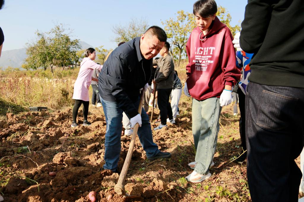 参观结束后,在工作人员指导下学院师生开始劳动实践。劳动过程中师生积极主动、分工明确、其乐融融。