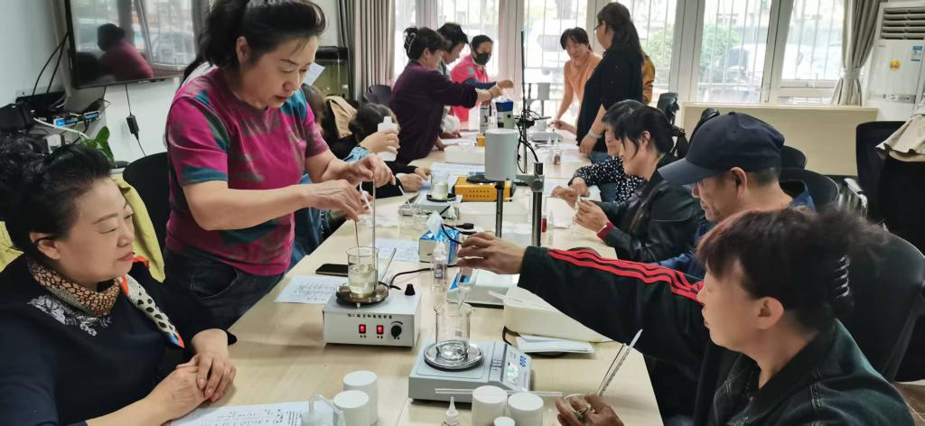 5月8日,万象城娱乐awc线路联合北京银行昌平管辖行、城南街道办,在富泉花园社区开展“京邻相伴 昌聚未来”主题系列活动之“美颜实验室”DIY化妆品。本次活动旨在通过动手实践,让社区居民了解传统化妆品制作工艺,体验DIY的乐趣,同时提升社区居民的生活品质。此次活动的内容是制作护手霜,共有20名社区居民参与,现场气氛活跃,参与者们在轻松愉快的氛围中学习到了实用的化妆品制作知识。