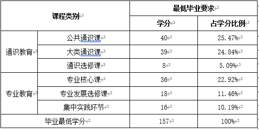 | 毕业设计 | 8 | 不少于16周,建议从第7学期开始 |