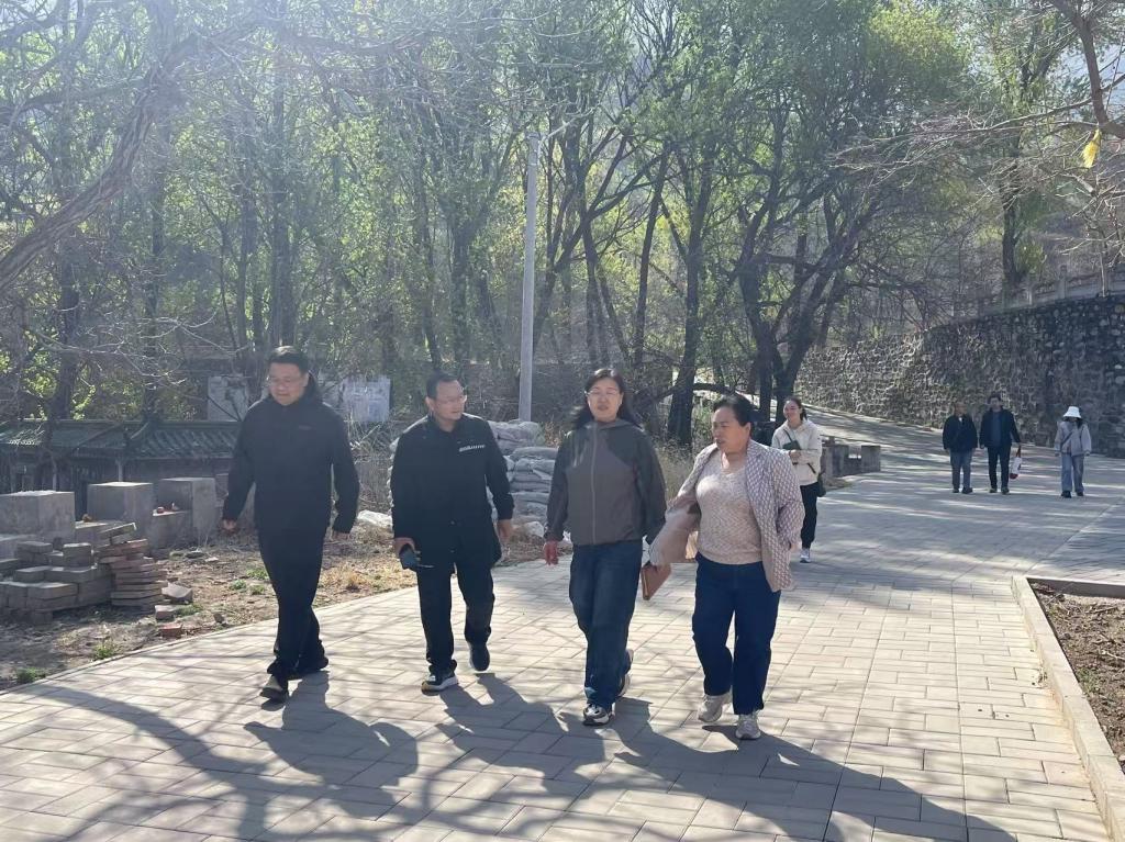 在菩萨鹿村,村委会张主任、窦书记热情地接待了我院调研团队。在村委会领导的带领下,调研团队漫步于村间小道,领略到了菩萨鹿村山间美景的独特魅力。作为北京市正规宗教场地之一的菩萨寺,更是此次调研的重点。调研团队认真细致地对菩萨寺的建筑风格、精美纹样以及寺内绿植进行了全方位的考察。大家用镜头记录下古老建筑的每一处精妙之处,用文字详细记录下所见所闻,并通过村领导的悉心讲述了解了菩萨寺与菩萨鹿村的历史背景,共同探讨了在文化传承、旅游开发等领域进一步合作的可能性,为后续的合作奠定了良好的基础。