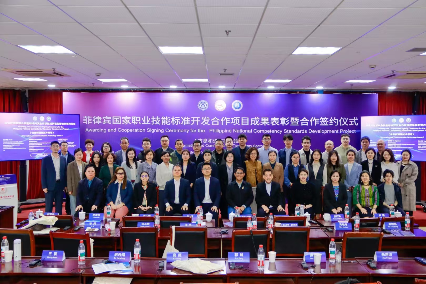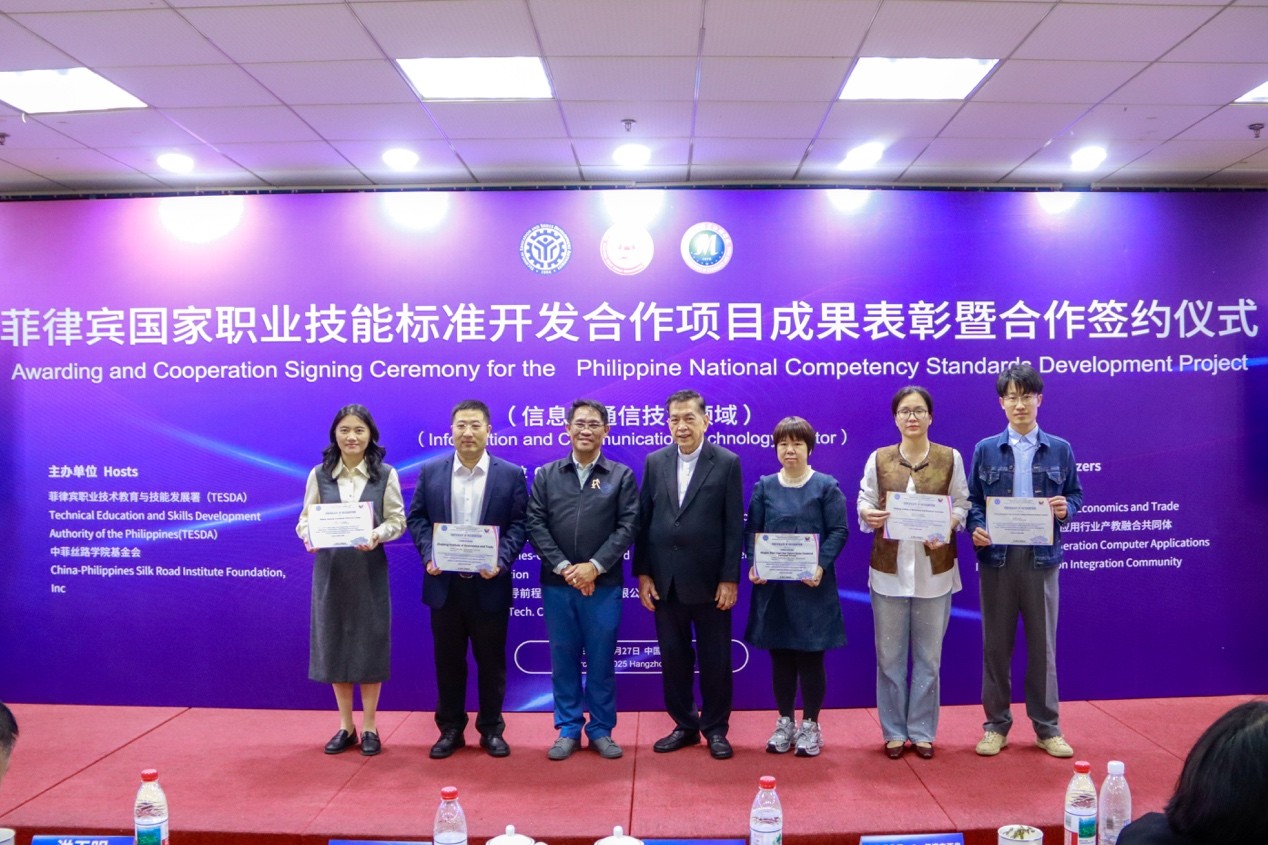 近日,菲律宾国家职业技能标准开发合作项目“信息和通信技术领域”成果表彰暨合作签约仪式在杭州隆重举行。活动由菲律宾职业技术教育与技能发展署(TESDA)、中菲丝路学院基金会共同主办,TESDA资格与标准办公室执行署长El Cid Castillo、中菲丝路学院基金会主席张红阳、菲律宾国家职业技能标准开发合作项目秘书处秘书长段建、TESDA标准认证专家以及信息通信技术领域标准制定的全国院校代表共60余人参加。我院作为菲律宾职业技能标准开发单位受邀参会。