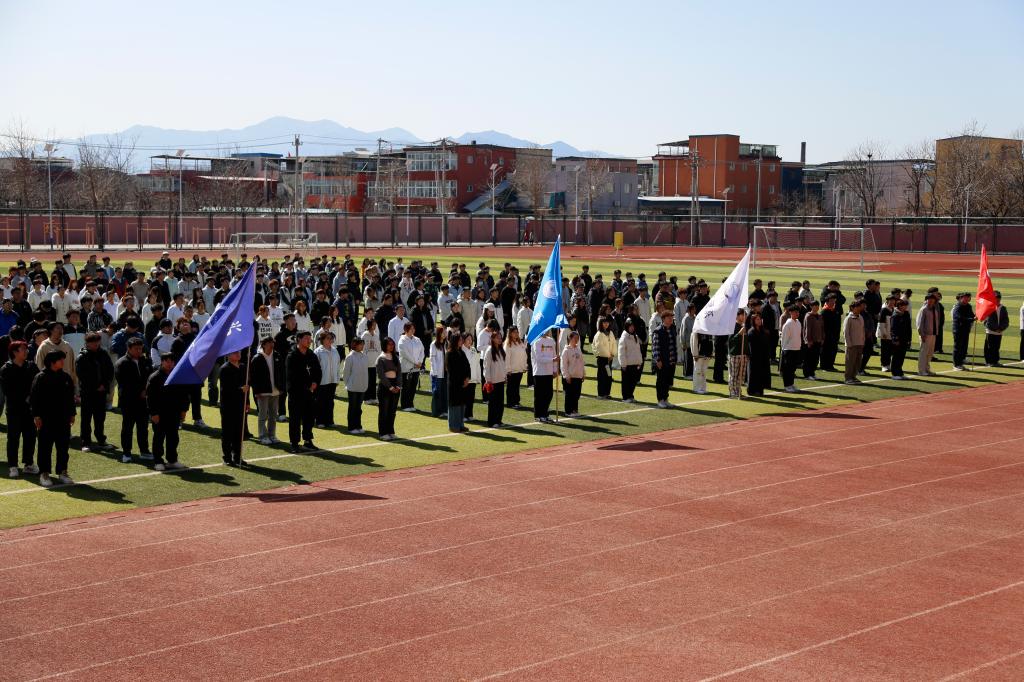 同学们在操场上摇旗呐喊