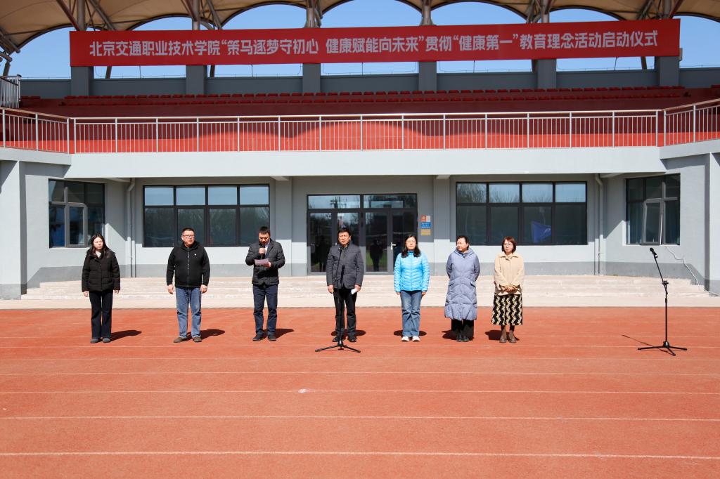 近日,学院“健康第一”教育理念工作部署会在办公楼二层举行,为相关工作统一思想、凝聚共识。“健康第一”开学第一课启动仪式在操场隆重举行。学院党委副书记、院长刘建新,党委委员、副院长罗春红,党委委员、副院长李大泳,党委委员、副院长王颖及相关部门负责人出席活动,各系师生代表共同参加。