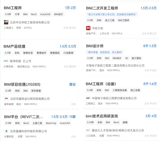 主要岗位—BIM工程师,提升岗位—BIM项目经理,拓展岗位—BIM动画工程师、BIM产品经理、BIM软件开发工程师