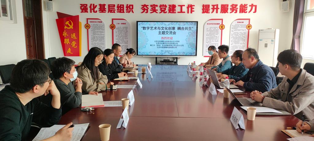 2023年3月31日下午,北京市云知博职业技能培训大兴学校韩亚飞、北京市龙博天空科技有限公司张金秋、潮之乐(深圳)文化发展有限公司北京分公司李秀坤、北京中成普梅科技有限公司杨志普一行4人来我校路桥系就校企合作进行座谈交流。学院副院长罗春红、路桥系数字艺术专业群主任杨文生、环境艺术专业主任孙兆英、数字媒体艺术设计专业主任杨硕和数字艺术设计专业教师出席交流会。
