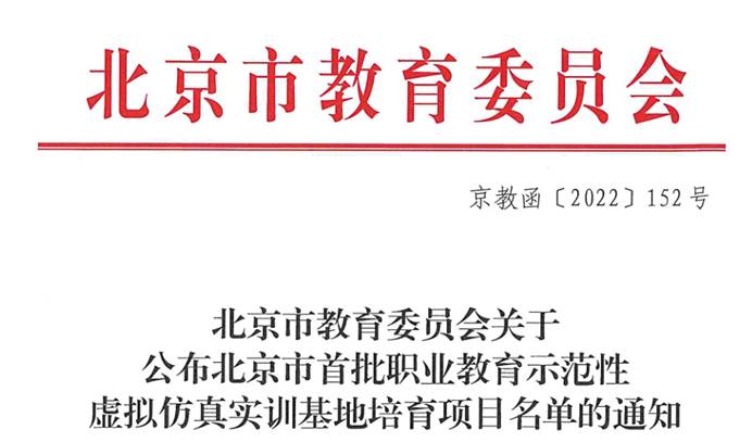 2022年4月25日,北京市教育委员会公布了北京市首批职业教育示范性虚拟仿真实训基地培育项目名单,万象城娱乐awc线路“数字城市建设虚拟仿真实训基地”名列其中。