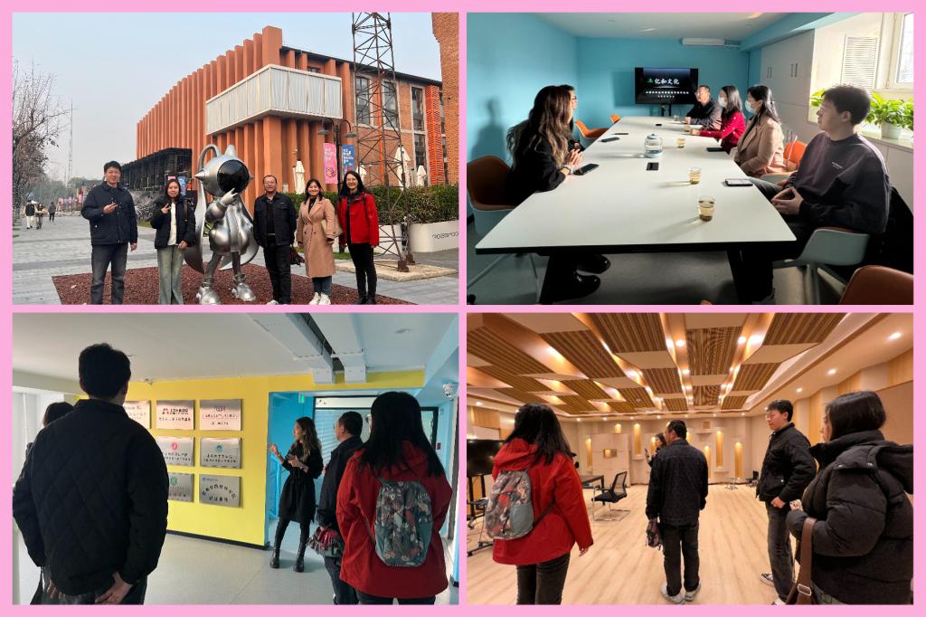 首先,教师团队参观了公司的剪辑部门、调色室、调音室、录音棚等工作环境及岗位。然后刘依凡总监详细介绍了该公司的发展历程、业务范围、企业文化以及近年来在校企合作方面取得的成就。她重点阐述了公司与多所高校的合作模式,包括共建实习实训基地、联合培养项目、以及学生在企业中的成长路径。同时,刘总也分享了公司的招聘标准与流程,强调了对创新思维与实践能力的高度重视。最后,双方共同探讨了未来合作的多种可能性。