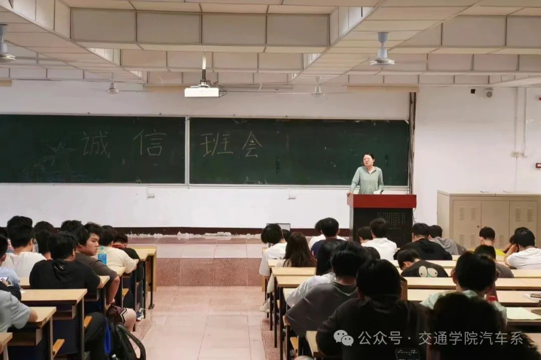 为了进一步增强学生的诚信意识,提升考试纪律,交通学院汽车系于2024年6月12日下午五点十分召开"诚信考试"主题班会。此次班会由汽车系三位班主任在两个教室分别对大一大二同学组织开展,旨在通过教育引导深化学生对诚信考试重要性的认识。