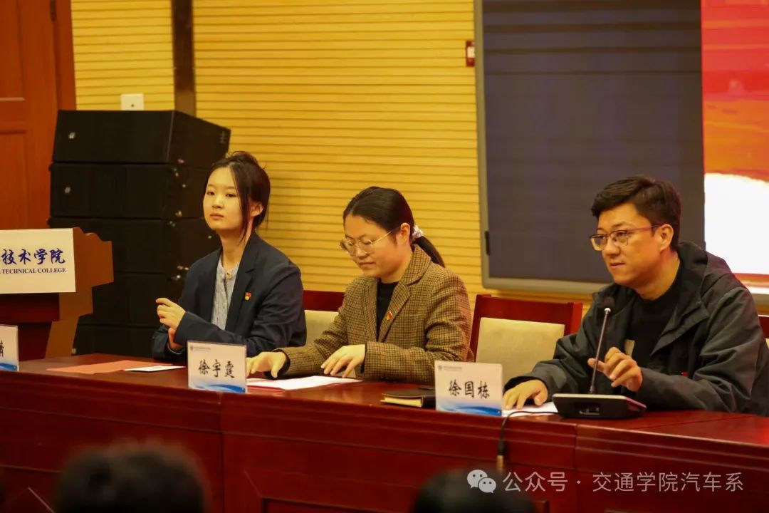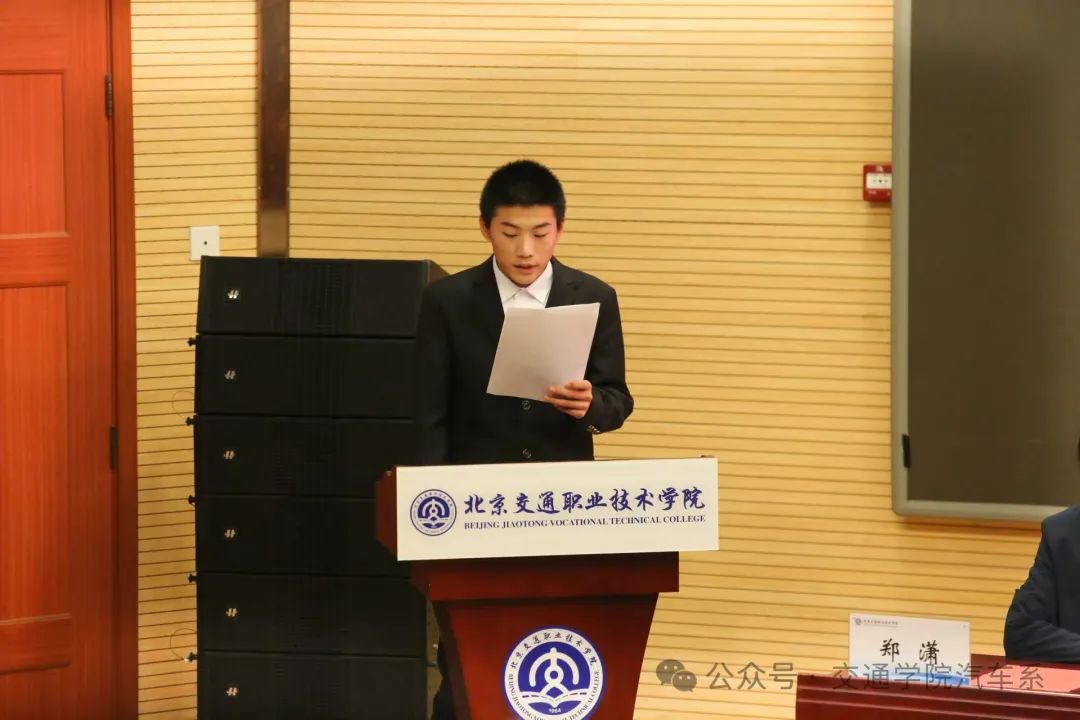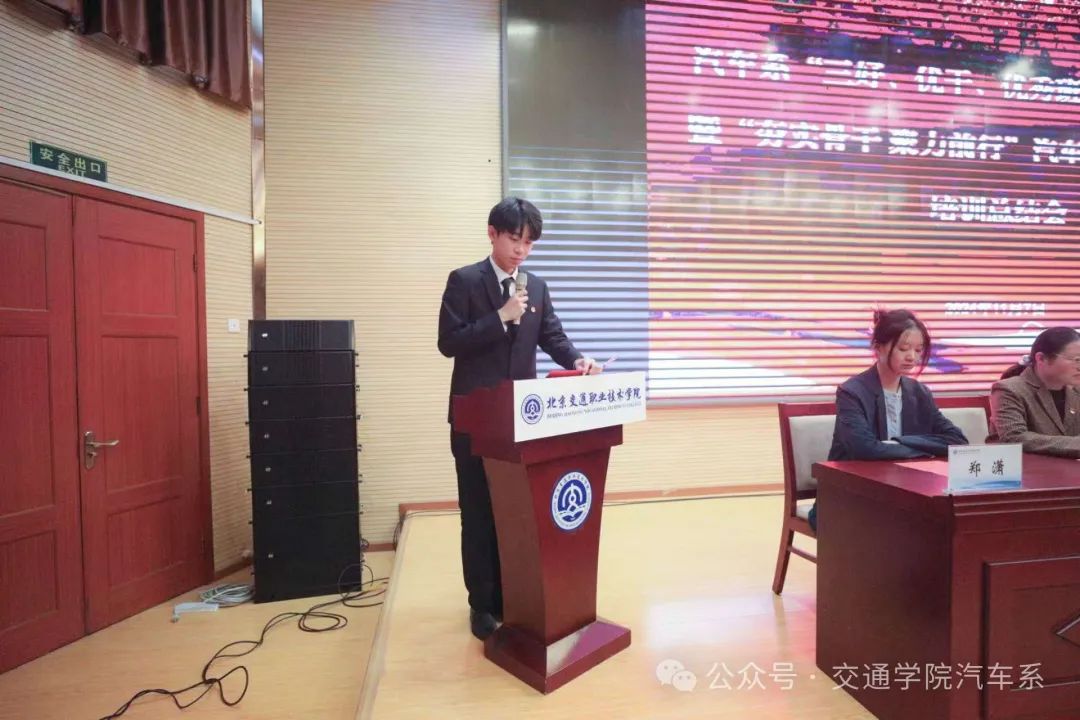 仪式第一项,由徐宇霆老师介绍学生会的职能和学生干部的职责。接着,汽车系学生会主席团成员杜嘉壕进行学生会工作总结,回顾了过去一年里学生会的工作内容和取得成就,并对未来发展做出了一定规划。最后,徐国栋书记讲话,提到了学生干部在工作中对于沟通能力和办公能力的检验,大家应该明白为什么要当一名学生干部。要求同学们在培训期间要按时参与、认真听讲、独立思考,并且应用于实践。