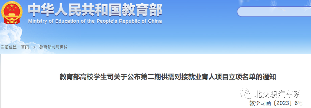 近日,《教育部高校学生司关于公布第二期供需对接就业育人项目立项名单的通知》(教学司函〔2023〕6号)发布,我系与北京博海迪信息科技有限公司对接的《定向人才培养培训项目》成功入选了教育部第二期供需对接就业育人项目立项名单。