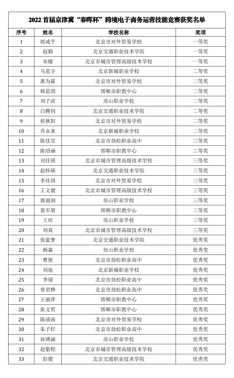 砥砺耕耘结硕果,弦歌不绝奏华章。12月25日,由北京市对外贸易学校(北京市商务局教育中心)主办的跨境电子商务运营技能比赛顺利落下帷幕。经过激烈角逐我系赵颖同学荣获一等奖,白腾钊同学荣获二等奖,赵梓硕同学荣获三等奖,张蓝梦、彭熠同学获优秀奖。