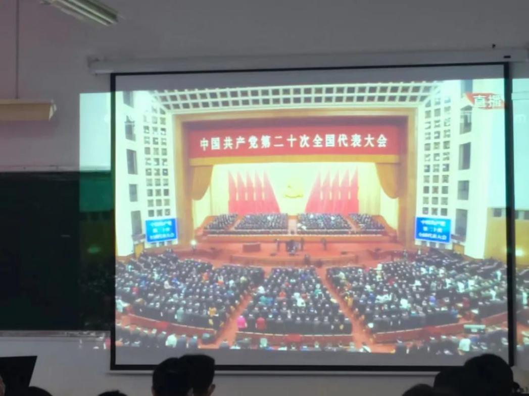 金秋十月,中国共产党第二十次全国代表大会在北京隆重开幕,为庆祝党的二十大胜利召开,进一步激发培养学生爱国爱党情怀,引领广大青年牢记时代使命,坚定信念跟党走,让红色基因、革命薪火代代传承,我院组织各系在线观看中国共产党第二十次全国代表大会现场直播。
