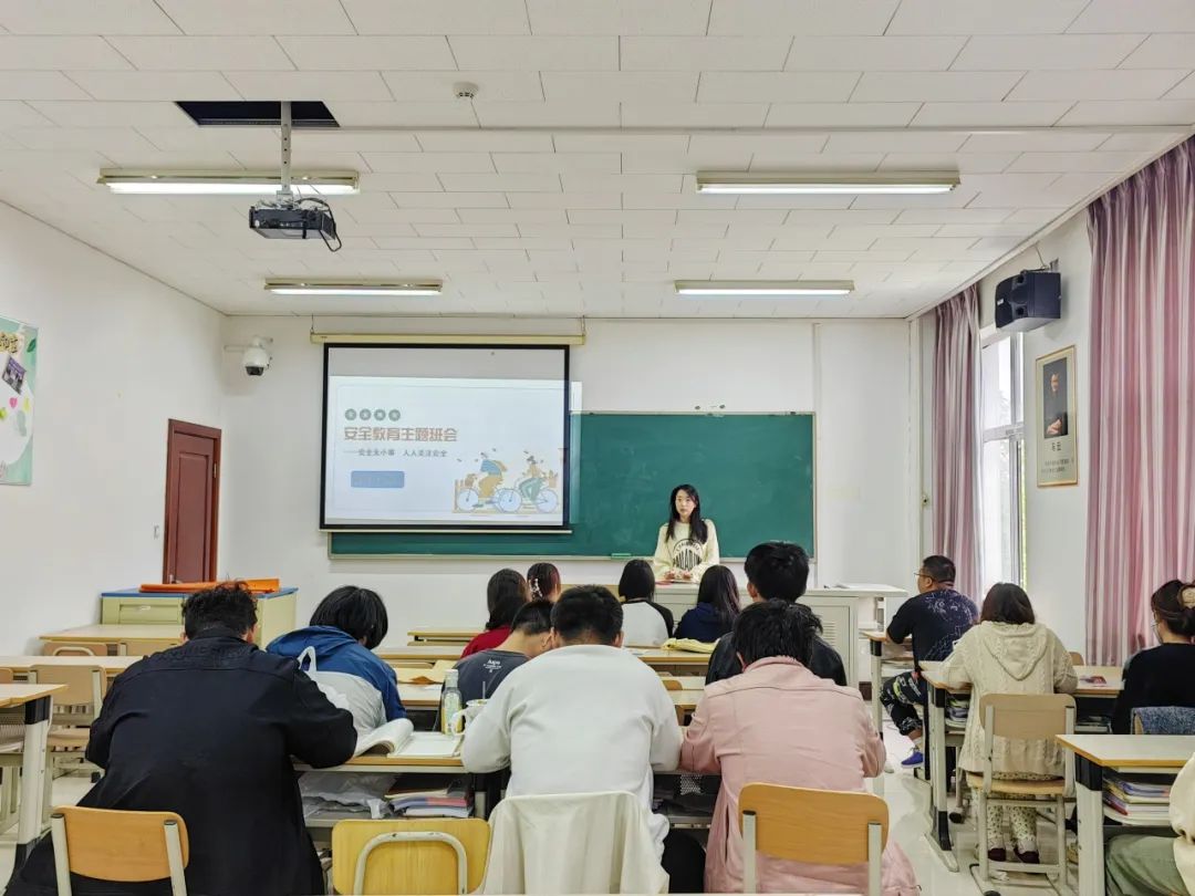 4月28日,管理系高雪源老师和刘睿老师为同学们开展了五一假期安全教育班会,分别就交通安全、食品安全、消防安全、财产安全、防溺水防踩踏等展开讲解,提高学生安全意识。
