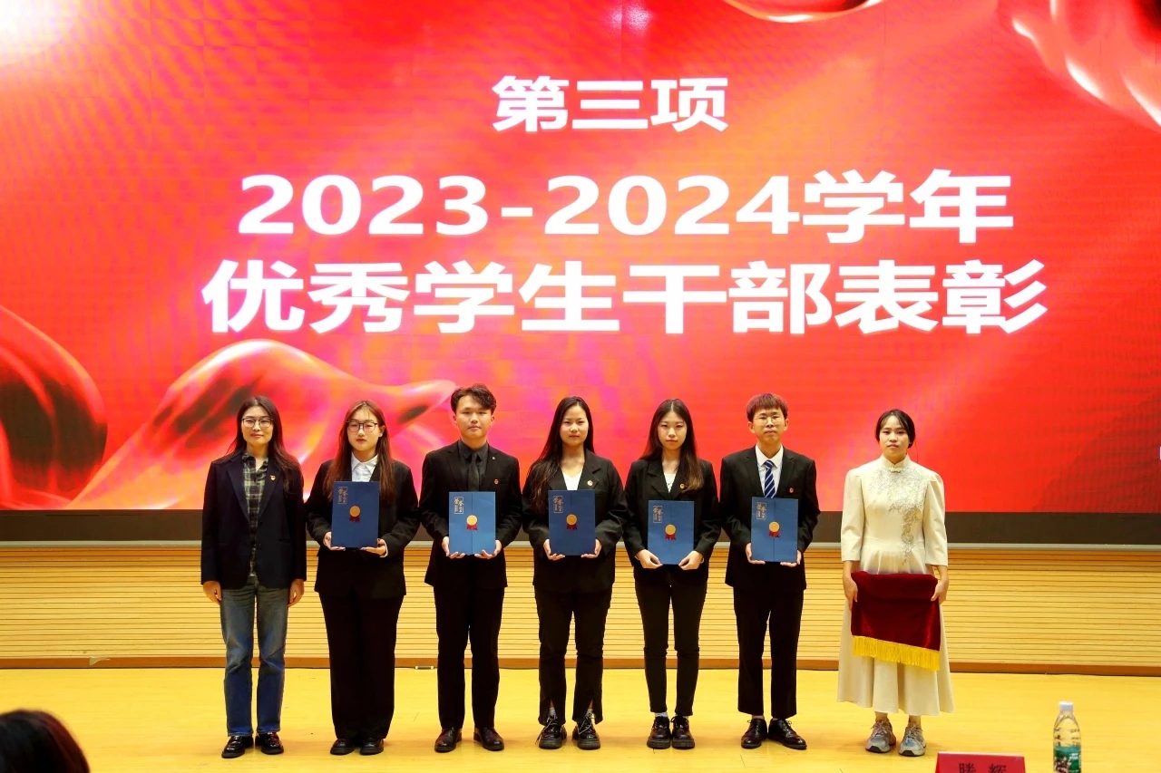 2024年优秀学生干部表彰大会暨学生干部换届典礼顺利落下帷幕。此次会议有力地激励并强化了同学们向优秀学习、向优秀靠近的决心,促使大家积极进取、奋发拼搏,共同铸就辉煌未来。